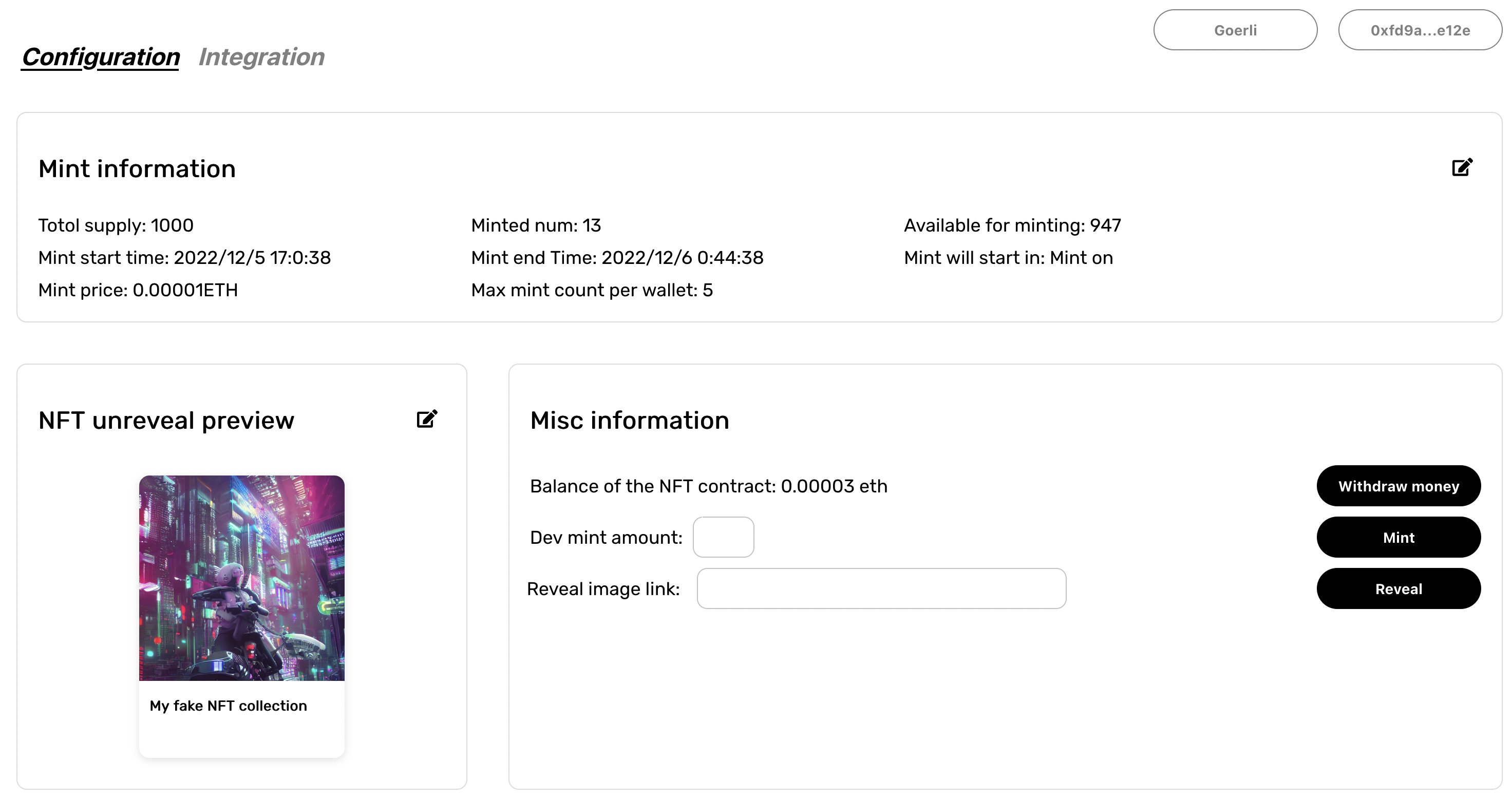 The NFT creator can withdraw NFT sales money from smart contract by clicking **withdraw money** button.