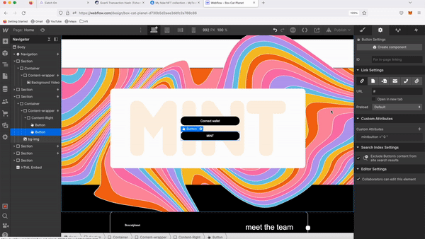 2. Go to Catchon website and copy the integration section code. Here is our template website: <https://webflow.com/made-in-webflow/website/box-cat-planet-d730b5d2aee3ddfc2a788c86>