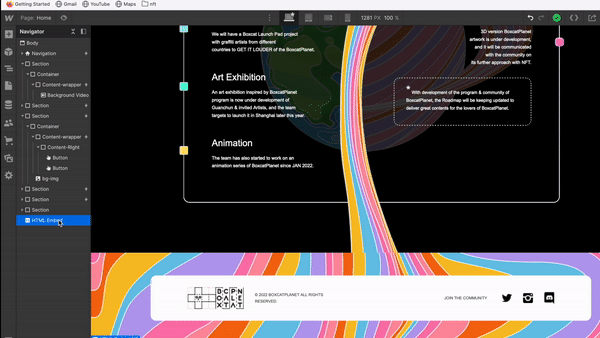 3. Go to webflow designer page. Add an **embedded** code section. **Copy and paste** the integration section into code editor. Click **Save**.<br>